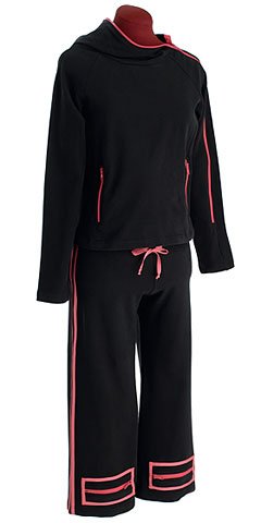 These pants are cropped and just comfy! They have two stipes down each side, drawstring waist, and zipper trim on the bottom. Pants sit low on the waist (but not too low) and are very flattering and comfortable. Pair these up with the Paradoxa Jacket.